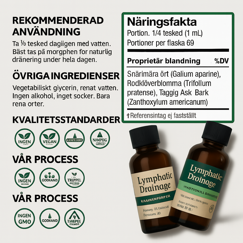 Till skillnad från många andra vätskedrivande produkter som innehåller starka stimulantia och syntetiska ämnen, håller Nuflos det helt naturligt – med bara fyra väldokumenterade lymfatiska örter. Varje dos är fullpackad med milda växtbaserade ämnen som stöder kroppens naturliga dräneringssystem – utan några stimulerande tillsatser.